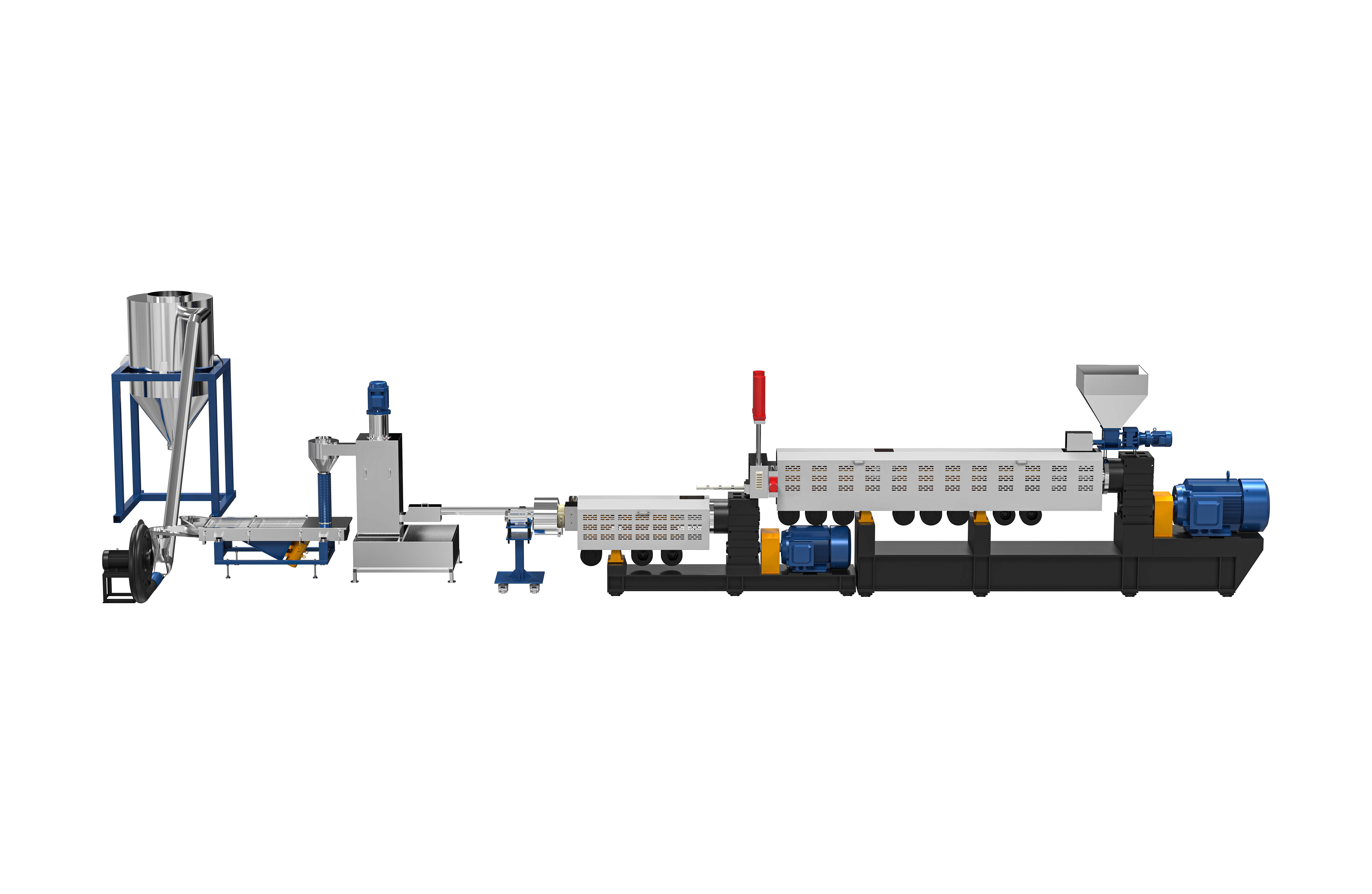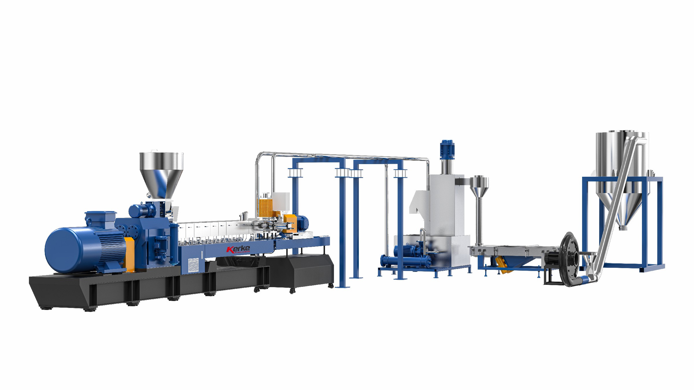 雙螺桿擠出機廣泛應用于塑料、橡膠、食品、寵物食品等眾多領域,在廢舊塑料的回收二次利用上,雙螺桿擠出機表現優異,本公司利用自身技術優勢,吸收百家之精華,開發研制新型高扭矩、高轉速、高產量KTE系列雙螺桿擠出造粒機組,KTE-SE系列雙價式單、雙螺桿復合混煉造粒機組,SE系列單螺桿混煉擠出造粒機組,RSE系列單螺桿廢膜回收造粒機組,容積式計量喂料系統以及造粒機零配件等,設備對塑料、橡膠及各類高分子材料共混、均化、塑化、著色、填充、增強及回收等領域具有更廣泛運用。